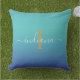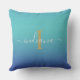 Blue Turquoise Ombre Elegant Monogram script name outdoor pillow for when you want to hang out with friends and family outdoors on those warm summer nights or by the fire on cold nights