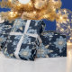 Blue on Blue Jewelled Snowflakes - in shades of blue on a dark blue background with gold accents - perfect for Christmas or all occasion gift wrap