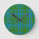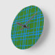 Blue On Green Tartan Plaid Pattern Design Round Clock