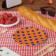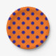 Blue On Orange Polka Dots Pattern Design Paper Plate