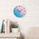 Lovely baby blue on pastel pink creates a wonderfully light and airy design