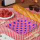 Blue On Pink Polka Dots Pattern Design Paper Plate
