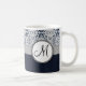 Blue on Silver Damask w Navy Stripes and Monogram Coffee Mug
