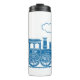Fun bright blue steam locomotive train drinks bottle perfect for a young train enthusiast, model train builder or trainspotter. Customise with your son's name up to five letters on train and down side of bottle. Currently reads Flynn. Designed by Sarah Trett for www.myittleeden.com