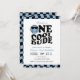 Blue one cool dude wavy smile face boy first birthday invitation.