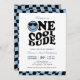 Blue One Cool Dude Preppy Smile Boy 1st Birthday Invitation