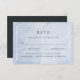 Modern and chic wedding RSVP card inspired by opal gemstones features a pastel blue watercolor background with a white double border and your RSVP details in elegant off-black lettering. Personalise with your meal choices or entree selections beneath. Designed to match our Blue Opal wedding collection.