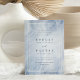 Modern and chic wedding invitation inspired by opal gemstones features a pastel blue watercolor background with a white double border and your wedding details in elegant off-black lettering.