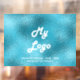A blue background, white coloured text. Personalise and add your business logo and text. Delete the text if not wanted.