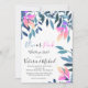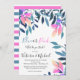 Blue or Pink "what do you think?" gender reveal baby shower invitations. Features bright pink and blue branchs and leaves with a modern striped back.