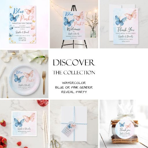 This cute gender reveal baby shower invitation design features a watercolor butterflies and can be personalised with all the information you need for your party in a whimsical typography. The invitation is designed for a baby shower party.