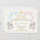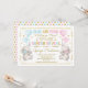 Gorgeous elephant theme gender reveal invitation featuring two adorable baby elephants with balloons in pastel blue, pink and gold