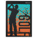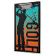 Perfect for the golf fan, this clip board features an abstract graphic rendering of a golfer in full swing. The text GOLF appears at the side. The image is in black, orange, and teal blue, with your name or other custom text in light grey at the top. You may easily remove the text if you'd like. Both sides of the clipboard have the same image and text. *Clip art used in this design is copyrighted by Encore Software, Inc., which permits use to its licensors. All rights reserved.