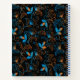 Blue and Orange Abstract Floral on Black Background Spiral Notebook by Gerson Ramos.