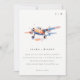 Blue Orange Blush Watercolor Air Plane Wedding Invitation