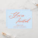 This birthday party invitation features "You're Invited" in a big, sweeping orange script across a soft sky blue background, with the party details in small bold text below. It's a fun, confident look that feels fresh and celebratory. There's room for the guest of honor's name, age, date, location, and RSVP info. It's shown here as a 21st birthday invite but works just as well for any age — or honestly any celebration where you want the invitation to feel a little special.