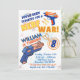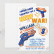 Nerf War 8th Birthday Invitation for boys. Gear up for an energetic celebration with this bold blue and orange theme. The layout displays a fun foam blaster battle motif, ideal for a massive eighth birthday bash. It features a large number eight inside a target, perfect for active kids who love team games. The style uses vibrant colors to create an exciting atmosphere. Customize the details for your specific time and location to ensure a memorable day for the whole squad.