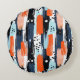 Blue Orange Brushstrokes Abstract Pattern Round Cushion