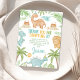 Cute boy's dinosaur themed birthday thank you card featuring various dinosaurs, foliage, volcano, balloon and party hats. This dino birthday thank you card is an ideal way to thank guests for coming to your little boy's dinosaur themed birthday party.