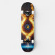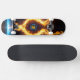 Hit the concrete jungle with unparalleled, explosive energy using this spectacular elemental skateboard deck. The long, horizontal format of the board serves as the absolute perfect canvas for this breathtaking artwork. In the center of the deck, a glowing magical ring burns intensely with blue and orange fire, while the dynamic flames and sparks spread outward towards the nose and tail, creating a phenomenal sense of speed and raw kinetic power.