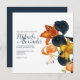 This square wedding invitation set with dark blue calla lilies and gold tiger lilies is elegant with other Fall floral wedding stationary. Autumn flowers wedding invitations are easy to personalise, and other size choices are available. Versatile for burnt orange, navy blue, Fall theme, or late summer wedding.