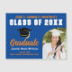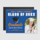 This modern blue and orange custom senior graduate photo magnet features your graduation photograph next to classy white typography of your college name for the class of 2025. Customise with your graduating year under the chic black handwritten script and black grad cap for a great grad announcement magnetic card.