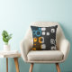 Blue, Orange, Grey Retro Abstract Art Pillow