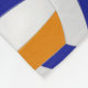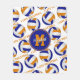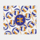 This volleyball themed fleece blanket features a mirrored pattern of volleyballs with blue, orange and white panels and the sporty font text "I love volleyball" in orange that stretches between the angled rows of volleyballs - athlete name and monogram can be personalised on the large overlying circle pendant - background is customisable white - easily delete the "I love volleyball" text lines, if desired, or replace the monogram with the player's varsity letter or jersey number - by katz_d_zynes