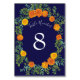 Blue & Orange Rose Floral Modern Wedding Table Number