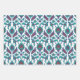 Blue Orange Teal Red White Oriental Floral Pattern Wrapping Paper Sheet