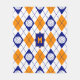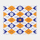 This sporty volleyball team colours fleece blanket features a blue, orange and white argyle plaid pattern with blue "stitching" extending diagonally across the diamond shapes and white volleyballs overlying the blue diamond shapes - customise with athlete's monogram - by katz_d_zynes