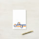 This volleyball themed notepad features 3 randomly arranged blue, orange and white volleyballs overlying thin blue & orange horizontal stripes at the bottom edge of the pad - personalise with the athlete's or coach's name - by katz_d_zynes