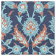 Colourful blue, cyan, white and orange terracotta vintage Turkish oriental floral pattern on a navy blue background.