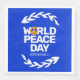 Celebrate the International Day of Peace (aka World Peace Day) on September 21 with these paper napkins, which show a bright orange peace sign standing in for the letter O in world, encircled by laurel leaves on a calming blue background.