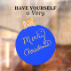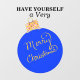 Merry Christmas is hand-written in gold colour script. Festive blue round ornament ball with red, pink, yellow, white polka dot accents. Keep wording or personalise it. Original Artwork by TamiraZDesigns.