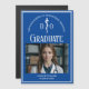 This royal blue custom osteopathic medical school graduation announcement magnetic card for a DO or an osteopath doctor features an osteopathic medical caduceus symbol and your college photo for the class of 2025. Customise with your graduating year in white for a great personalised university graduate photograph magnet.