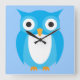 Blue Owl - Add Your Own Text Square Wall Clock