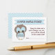 A fun game for you to include in the baby shower invitation that welcomes guests to be entered into a raffle, if they bring a package of diapers along with them to the baby shower. Cute baby owl in blue wears a little pair of diapers complete with a tiny diaper pin. Pastel baby blue and white colour scheme will coordinate with just about any baby boy shower invitation too.