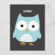 Blue Owl Postcard, "Who." Text can be personalised. A fun postcard for business and personal mailings. Visit Jenn's Doodle World for more animal postcards and fun products with this cute owl.