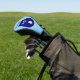 This owl design golf club head cover is an accessory that you slide over the head of a golf club for protection against knocks whilst sitting in your golf bag. Made out of polyester, cotton, and marine vinyl with a choice of different piping colours. You can customise this golf club head cover with any text. Should you require any help with customising then contact us through the message link on this page. Blue owl design golf club head cover.