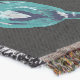 A quality printed throw has its advantages. This is a much finer weave throw than its loopier cousins, and though lighter, it is worth the investment for custom room accessorizing. The back is much prettier than the typical brown, and the fringe on the long sides very vivid, the selvage nicely done. Before photographing, I washed the throw in cold water, delicate, with a thicker woven throw the same size. On tumble dry low, this throw was dry in half the time as the other. This is a very practical quality if you use throws for furniture covers or to wrap up in frequently. The sleekness of the fabric makes it a great layer for accenting or protecting without the feeling of sitting on too much stuff. Perfect for napping or when you feel a light chill coming on. The color printing is beautiful and on this fabric, matched the design and color of my Photoshop image. This is an advantage for blending room fabrics and colors. The fringe on the short sides prints the colors from the design image and therefore varies from the side fringe. I streaked a white fractal line through the plaid pattern to give the illusion of weaving. This printed as crisp as an illusory thread, and put some white in the short side fringe, showing another advantage of print vs loomed- for artistic purposes, line lines, detail, and color integrity can be planned and preserved. My loomed throws have color limitations and more of a needlepoint texture. Print throws reproduce an exact image. The throw felt a little stiff straight out of the package, but this went away in the first delicate wash. Of course I searched the wash water for ink or bleeding and there was none.
