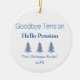Celebrate the next chapter of life with our Blue Pagoda Christmas Trees Retirement 1-Photo Ornament. This ornament features the playful phrases "Goodbye tension, Hello Pension" and "First Christmas Retired" alongside our elegant blue pagoda Christmas trees. Personalise it with the year on the front, and customise the back with your own photo to create a meaningful keepsake. This retirement ornament is both fun and sophisticated, making it the perfect gift for someone retiring or a timeless addition to your holiday décor. Explore our Chinoiserie Pagoda Christmas Collection and Ornament Collection for more unique designs.