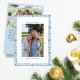 Blue Painted Folk Floral Border Christmas Photo Holiday Card