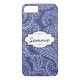 Blue Paisley personalised iPhone 6 Barely There case, a colourful and fun paisley design of bright blue and white with a white banner you can customise with your name!