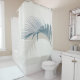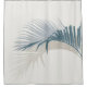A palm leaf casts a shadow on the wall. Minimalist illustration (blue, grey and natural white)