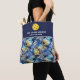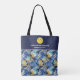 Super cute double-sided tote bag for your pickleball paddle and gear. Design features a yellow pickleball, two lines of custom text set above a colourful blue, gold, white tropical palm tree leaf pattern. Get matching ones for your club, team or pickleball trip . . . Makes a nice gift for the pickleball player in your life.