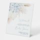 This elegant baby shower welcome sign features a bohemian dusty blue and white pampas grass watercolour illustration. It's keeping with the trending pampas grass theme and be perfect for your boho baby shower. Use the template fields to add your information and customize this item. Contact the designer if you need assistance with adding your information.