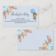 A bring a book request, ticket insert for a baby shower. A light blue background. Decorated with light blue florals, pampas grass, and a teddy bear boy holding a blue balloon.