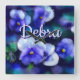 Blue Pansies Pansy Flower Floral Personalised Square Wall Clock