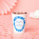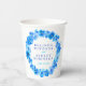 Watercolor loose art pretty blue modern flower wreath wedding paper cups. Personalise these white and blue floral cups with your own bride and groom's names and wedding date. Other matching spring blue pansy flower wedding and event items are available. © Unique hand-painted watercolor art and design by Sarah Trett for www.mylittleedenweddings.com